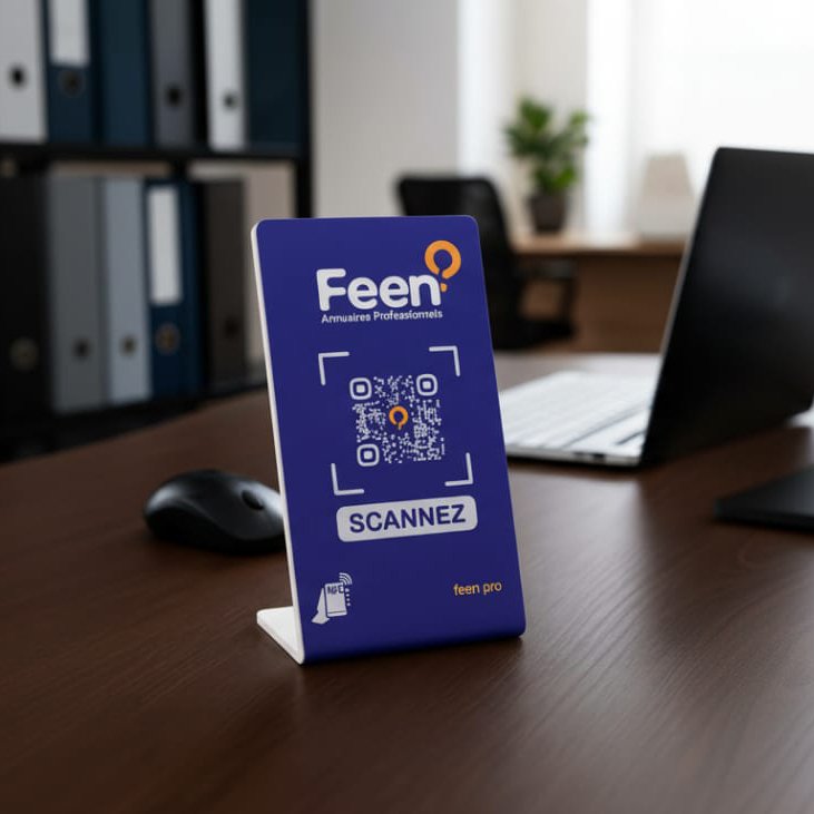 Au-delà de votre profil numérique, vous pouvez booster votre visibilité avec des supports NFC/QR personnalisés disponibles sur demande. Ils connectent les clients instantanément, partagent vos détails d'entreprise sans effort, et modernisent votre image.